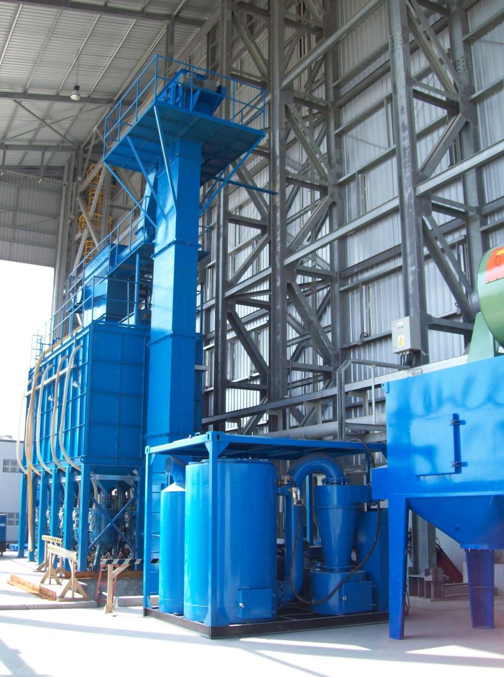 磨料運送方式是該設備設計的另一亮點。除了眾所周知的需要很小安裝深度的扁平式傳送地面以外,在螺旋傳送機和振動橫格磨料傳送技術等方面具有極其豐富的經驗。對于大型工件一般采用開放式噴砂。
